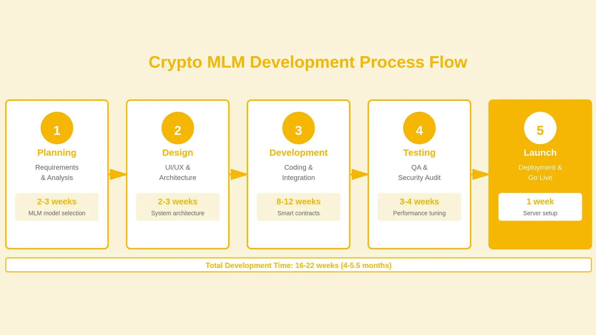 The development timeline typically ranges from 3 to 6 months, depending on the complexity of features, MLM compensation plan, blockchain integration, and security requirements. Basic platforms with standard MLM models and single-chain integration take less time, while advanced systems with hybrid plans, smart contracts, mobile apps, and multi-chain support require longer development cycles. Proper planning and clear requirements can significantly reduce delays.
