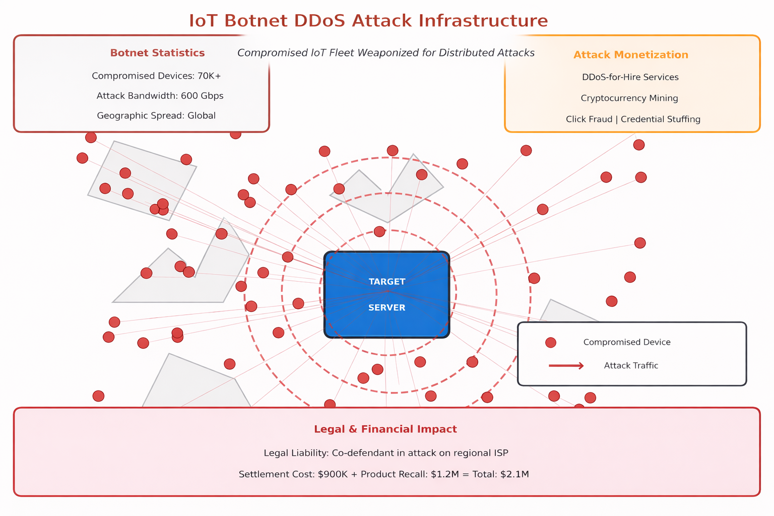 Connected Vehicle Startup Collapse: A connected vehicle startup faced complete market collapse after security researchers demonstrated remote vehicle control vulnerabilities. The technical fix was feasible, but customer trust evaporated instantly. The company lost 80% market value in three weeks, faced class-action lawsuits, and ultimately sold assets for pennies on the dollar. The security vulnerability cost perhaps $2M to fix, but the business impact was $400M in destroyed enterprise value—demonstrating that IoT security failures create existential business risks, not just technical problems.