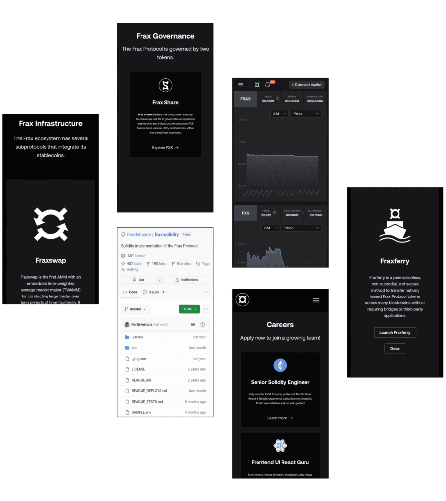 Frax Finance aimed to create a robust, self-sustaining decentralized finance (DeFi) ecosystem centered on stablecoins. The primary requirement was to develop a scalable and trustless system, ensuring users could interact without relying on centralized authorities. This included the creation of stablecoins that are fully collateralized, maintaining a stable peg to the US dollar or other value indices, thereby providing a reliable medium of exchange and store of value within the DeFi space. Additionally, Frax Finance sought to introduce innovative financial products that seamlessly integrated within the DeFi ecosystem, offering unique solutions for lending, trading, and cross-chain transfers.