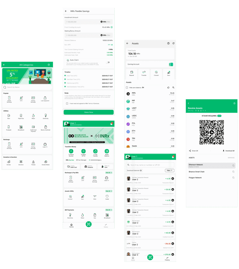 The development of INRx Pay followed a systematic approach, starting with detailed research into blockchain technology and existing digital payment systems. The objective was to design a crypto-powered UPI system capable of handling seamless everyday transactions. A strong emphasis was placed on user-centric design, ensuring the platform offered an intuitive interface and effortless navigation. Features such as bill payments, mobile recharges, fund transfers, and travel bookings were included after studying real-world requirements. Security frameworks and regulatory compliance measures were carefully prioritized, enabling trust and scalability for mass adoption. Rigorous testing, security audits, and iterative improvements were conducted to enhance stability, efficiency, and reliability. This structured development ensured the platform could deliver performance consistency before deployment and public availability.