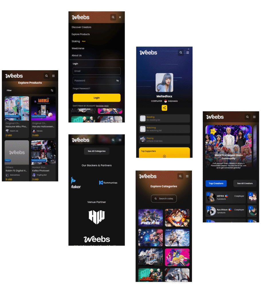 Weebs.app envisioned creating the world’s largest and most engaging otaku community platform, designed to unite anime, gaming, and comic fans globally. Their primary goals were to develop a virtual marketplace where users could connect with their favorite creators, purchase merchandise, and access exclusive events. Additionally, they aimed to introduce gamification through WeebsPlay, a feature that would boost user interaction by allowing fans to mine $WEEBS tokens. This feature would enhance user retention and add a unique, engaging element to the platform’s ecosystem.