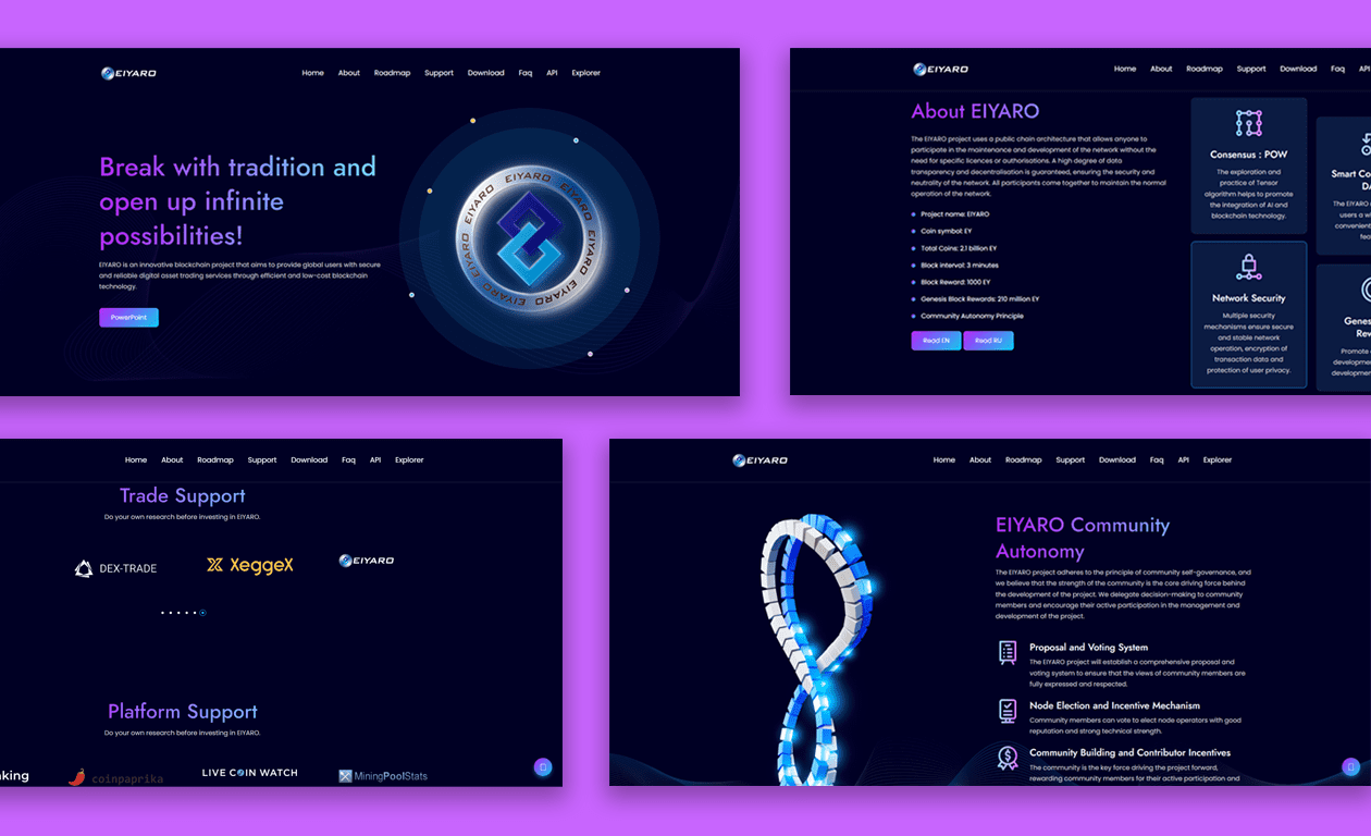 EIYARO is at the forefront of technological advancement and innovation in the blockchain space. The project leverages cutting-edge technologies and innovative approaches to deliver a robust and scalable digital asset trading platform. Here are key aspects of EIYARO’s technology and innovation: